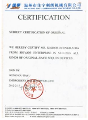 Shivani Enterprise is the only dealer, distributor & authorized service center operator of Jiayu (OLH) (Esteemed Embroidery Device Manufacturers) in India.